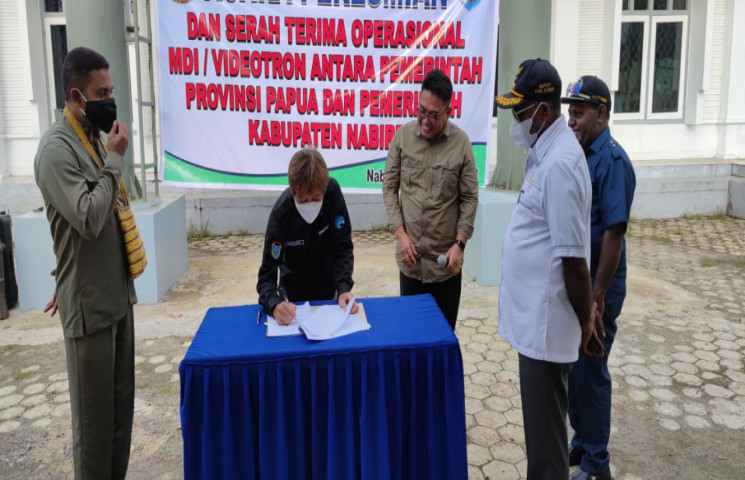 Pemerintah Provinsi Papua melalui Dinas Komunikasi dan Informatika resmi menyerahkan operasional multi media display/videotron kepada pemda Kabupaten Nabire.