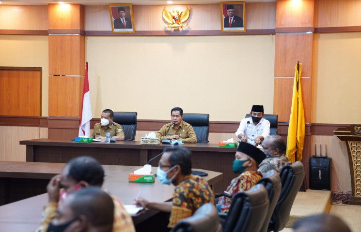 Penjabat Sementara (Pjs) Bupati Keerom, Dr. Muhammad Ridwan Rumasukun, SE, MM, menggelar pertemuan dengan para tokoh agama dan adat setempat, Senin (5/10/2020).