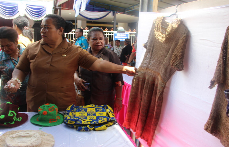 Dinas Pemberdayaan Perempuan, Perlindungan Anak Dan Keluarga Berencana (DP3A-KB) Provinsi Papua menggelar pameran hasil kerajinan perempuan penyintas untuk memperkenalkan kerajinan tangan perempuan Papua di depan Kantor DP3A - KB Provinsi Papua.