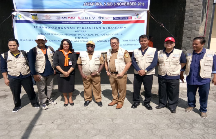 Dinas Kesehatan Provinsi Papua melakukan penandatanganan perjanjian kerjasama (Memorandum of Understanding) dengan PT Pos Indonesia Regional XI Wilayah Papua dan Papua Barat, di halaman Kantor Dinas Kesehatan Papua, Selasa (6/11).