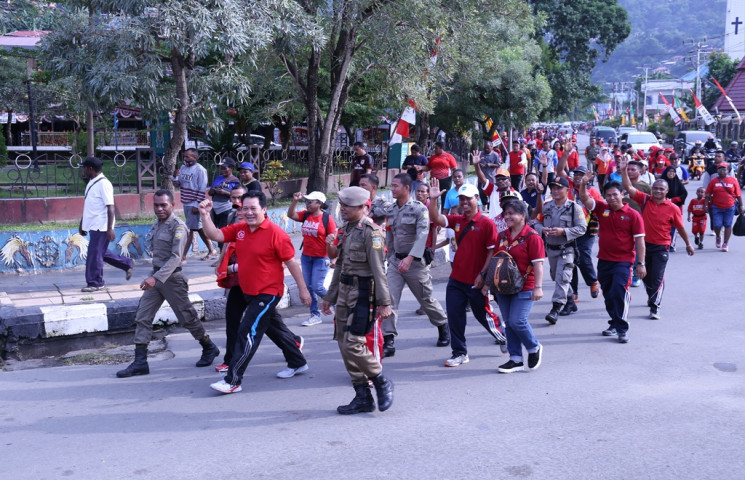 Dalam rangka memperingati HUT Kemerdekaan ke-72 RI, Pemerintah Provinsi Papua bersama stake holder terkait menggelar jalan santai pada, Jumat (18/8) yang mengambil start dan finish di Halaman Kantor Gubernur Dok II Jayapura.