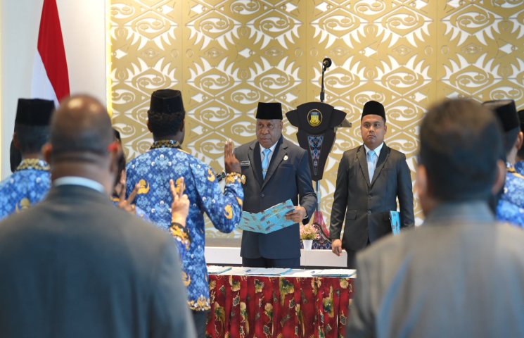 Gubernur Papua Matius Fakhiri menerima audiensi Finalis Puteri Indonesia 2026 yang mewakili Provinsi Papua, Glorya Stevany Yame Nayoan, di Jayapura, Rabu (18/2/2026). Audiensi tersebut turut didampingi oleh sejumlah SKPD terkait sebagai instansi pengampu.