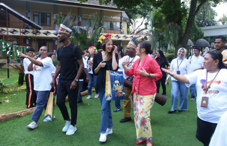 His arrival was welcomed by the Head of Inter-Agency Relations, Papua Regional Liaison Agency Office, in Jakarta, Alexander and the Head of UPTB of Papua Pavilion, Verra T Lewerissa.