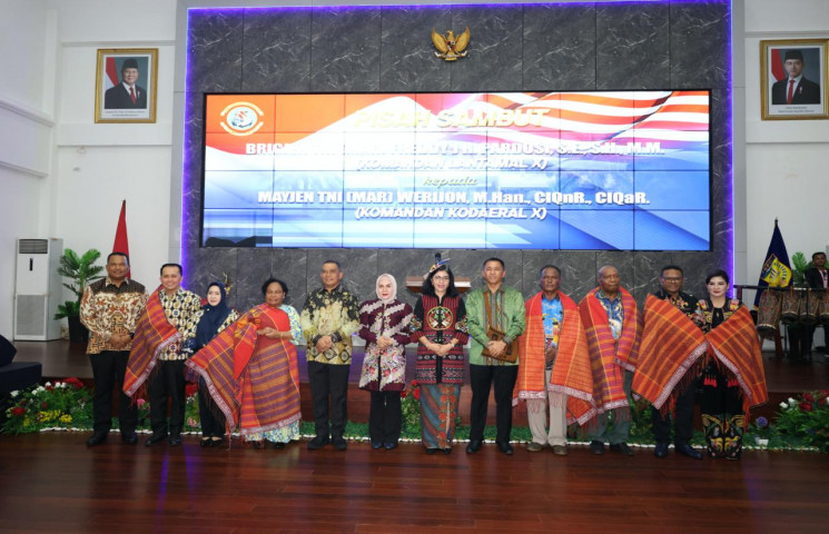 Penjabat (Pj) Gubernur Papua Agus Fatoni bersama Pj. Ketua TP PKK Tyas A. Fatoni menghadiri acara malam pisah sambut Komandan Lantamal X Jayapura Brigjen TNI (Mar) Freddy J H. Pardosi kepada Komandan Kodaeral X Mayjen TNI (Mar) Werijon. Acara ini berlangsung di Lukmen Hall, Jayapura, Papua, Rabu (20/08/2025).