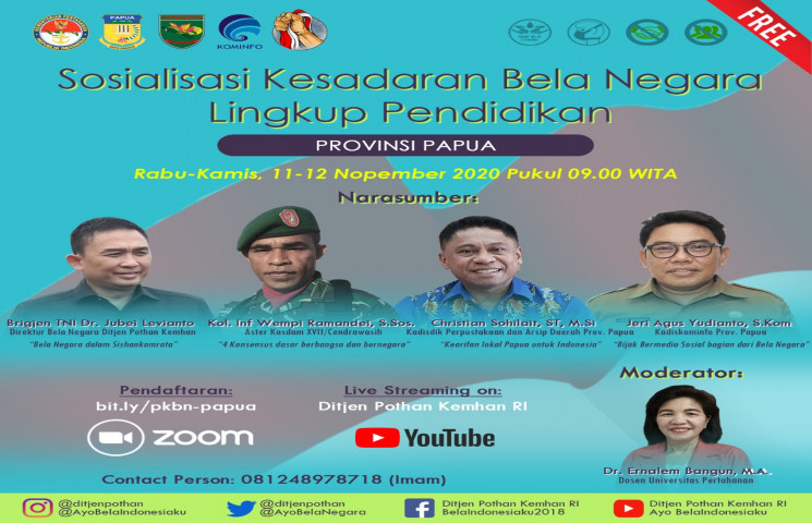 Pemerintah mengajak dunia pendidikan di Papua, yang didalamnya terdiri dari para dosen, guru, mahasiswa serta pelajar, agar dapat menjadi role model dan garda terdepan dalam mengaktualisasi maupun penyebarluasan nilai-nilai bela negara, di lingkungannya masing-masing.