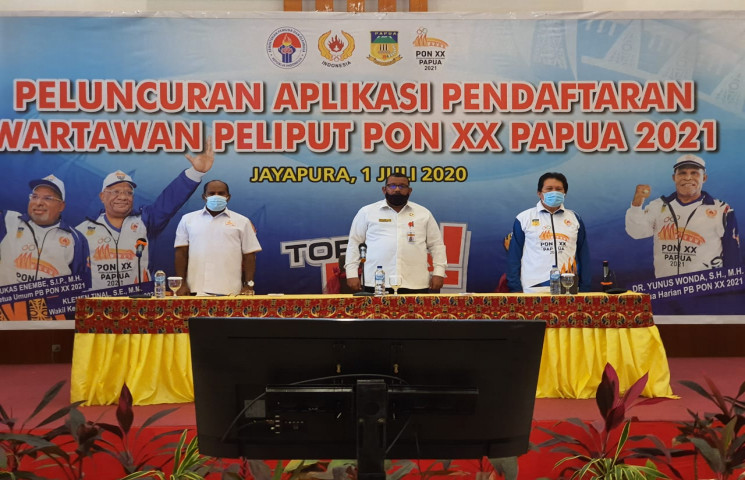 Aplikasi pendaftaran wartawan peliput Pekan Olahraga Nasional (PON) XX 2021 resmi diluncurkan oleh Plh. Sekda Papua Muhammad Musa’ad, di Hotel Horizon Kotaraja, Jayapura, Rabu (1/7/2020).