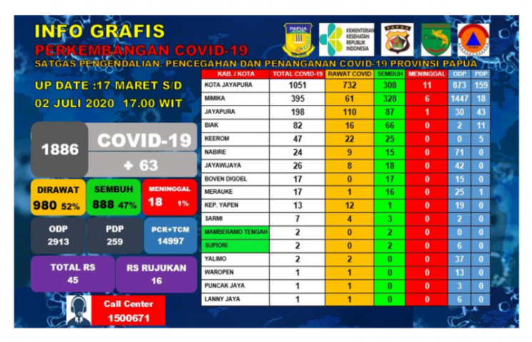 Pemerintah Provinsi Papua meminta masyarakat untuk jujur saat berobat di rumah sakit maupun fasilitas kesehatan lainnya. Hal demikian bertujuan meminimalisir angka penyebaran virus corona atau Covid-19 di bumi cenderawasih.