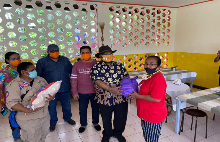 Gubernur Papua, Lukas Enembe membeli hasil pertanian dari pedagang Mama-Mama Papua untuk dibagikan kepada masyarakat yang terdampak ekonominya akibat pandemi corona atau Covid-19.