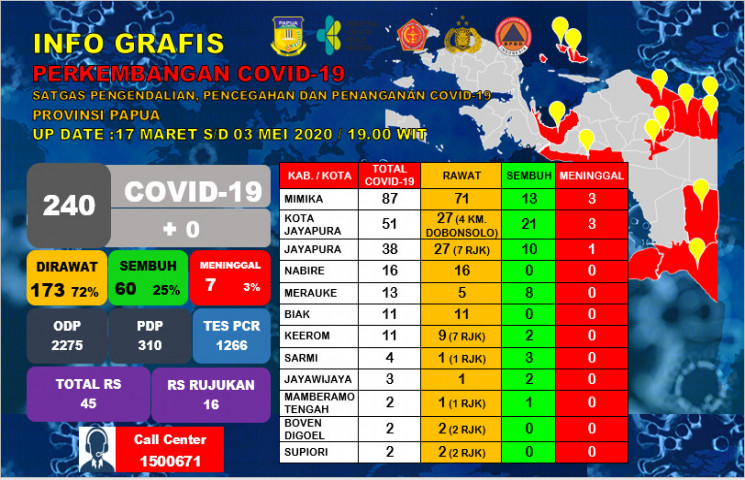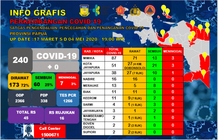 Satu orang pasien positif terinveksi virus corona (Covid-19) di Provinsi Papua, dinyatakan sembuh oleh otoritas setempat, Minggu (3/5/2020) malam 17.40 Wit