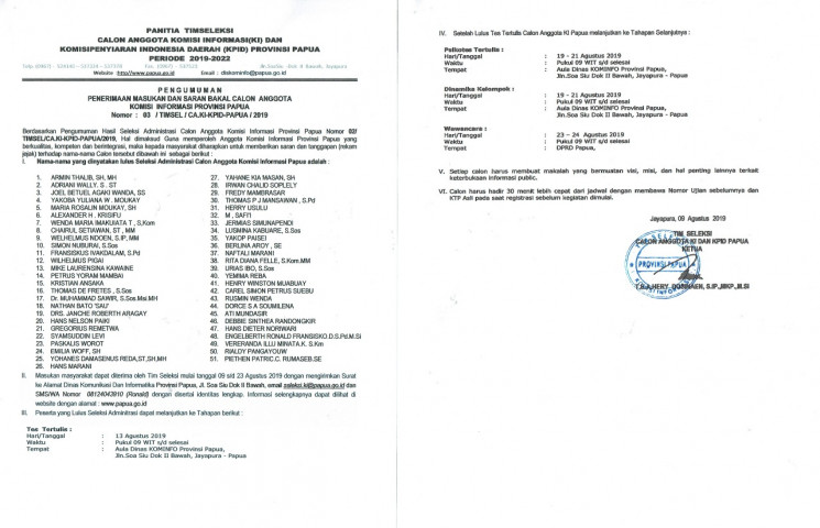 Ketua Panitia HUT RI ke 74 Provinsi Papua, Doren Wakerkwa mengajak seluruh warga bumi cenderawasih agar dapat mewujudkan semboyan Bhineka Tunggal Ika yang artinya berbeda-beda tapi tetap satu, dalam kehidupan sehari-hari, jelang peringatan hari ulang tahun kemerdekaan Indonesia.