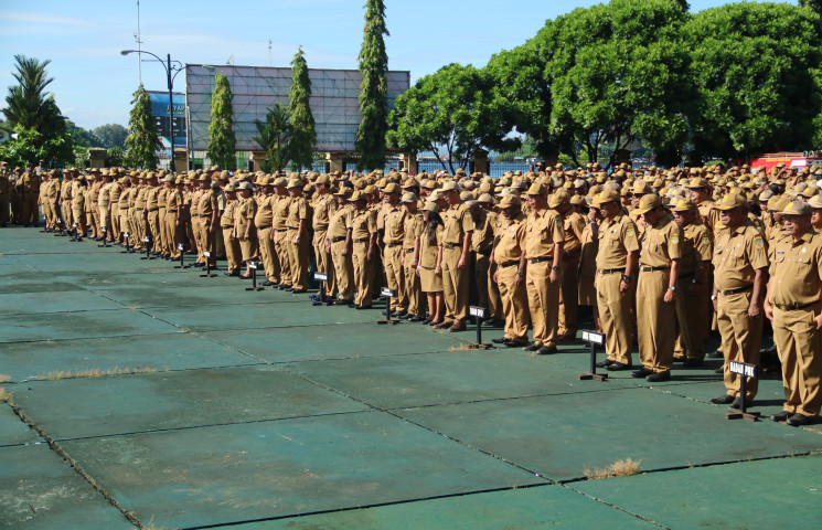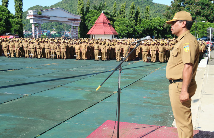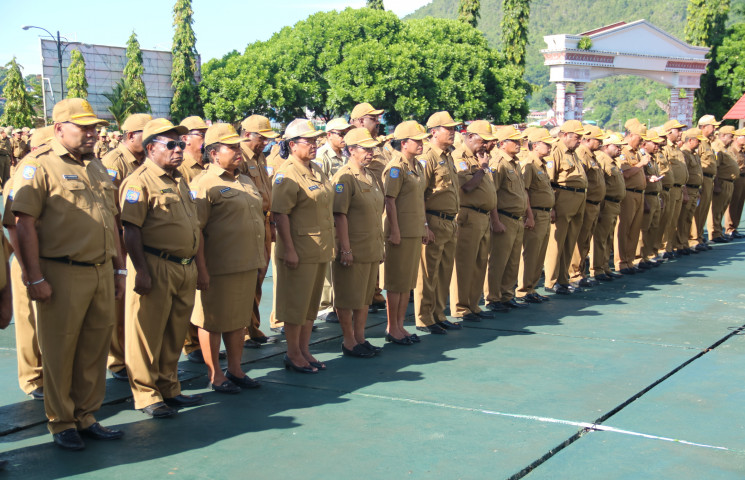 Sekretaris Daerah (Sekda) Provinsi Papua Hery Dosinaen mengapresiasi kehadiran aparatur sipil negara (ASN) pada upacara bendera, Senin (25/6), di Halaman Kantor Gubernur Dok II Jayapura.