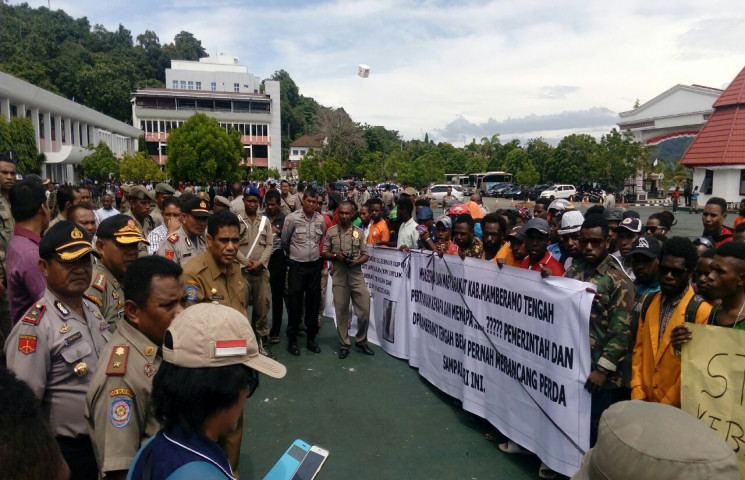Puluhan mahasiswa yang tergabung dalam Himpunan Mahasiswa Pelajar Mamberamo Tengah (HMPMT) Study Jayapura, berunjuk rasa di Kantor Gubernur Dok II Jayapura, Selasa (28/11) siang, menuntut hak mereka dibayarkan.