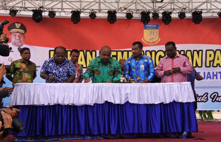 Tiga Kabupaten, yakni Paniai, Lanny Jaya dan Asmat resmi menandatangani program Bangun Generasi dan Keluarga Sejahterah (BANGGA) Papua, usai diluncurkan Gubernur Papua Lukas Enembe, Selasa (21/11) petang.