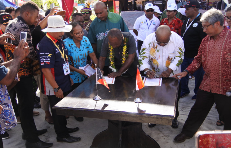 Pemerintah Papua resmi menandatangani kerja sama provinsi bersaudara dengan negara tetangga Papua New Guinea (PNG), disela-sela pembukaan Border Trade Fair, di Pos Lintas Batas Negara (PLBN) Skouw, Kamis (23/11).