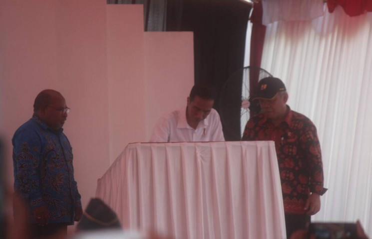 Presiden Joko Widodo memastikan setiap los Pasar Skouw Distrik Muara Tami Kota Jayapura yang sementara dalam pengerjaan, seluruhnya diperuntukan bagi warga (pedagang) lokal.