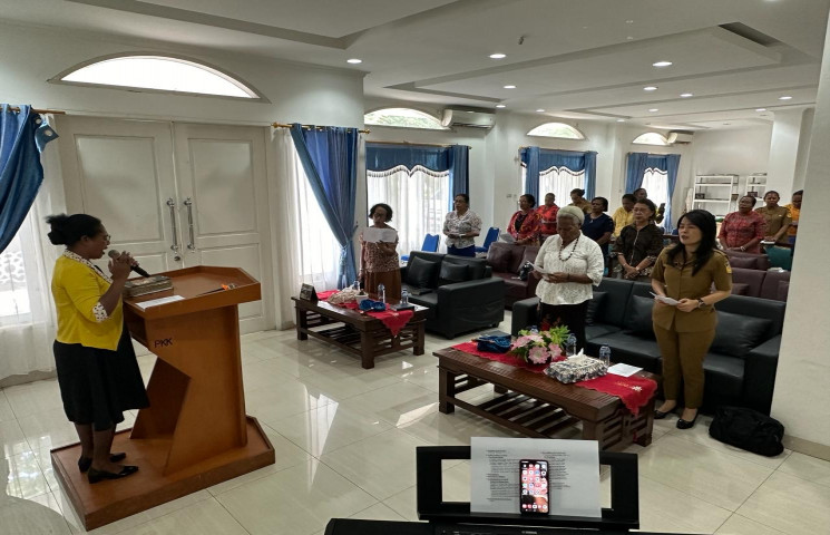 Pengurus Tim Penggerak Pembinaan Kesejahteraan Keluarga (TP PKK) Provinsi Papua menggelar ibadah bersama mendoakan Pemilu 14 Februari 2024 besok, berjalan aman dan damai di Bumi Cenderawasih.
