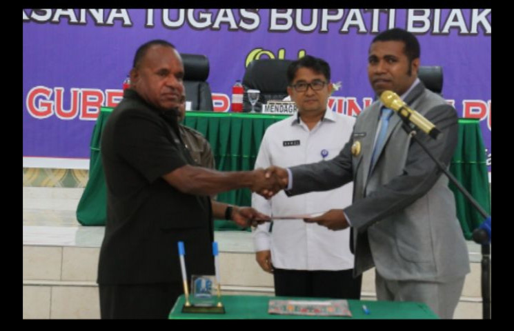 Kementerian Dalam Negeri resmi menunjuk Wakil Bupati Biak Herry Naap sebagai Pelaksana Tugas (Plt) Bupati, menggantikan Thomas Ondi yang sementara menjalani proses hukum.