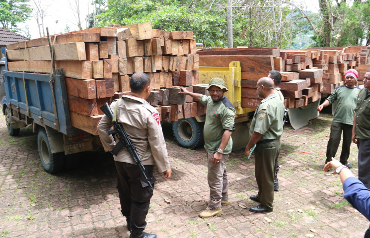 Tim Gabungan Dinas Kehutanan Provinsi dan Polda Papua berhasil, Selasa (8/10) dini hari, berhasil mengamankan empat truk kayu ilegal di Nimbokrang, Kabupaten Jayapura.