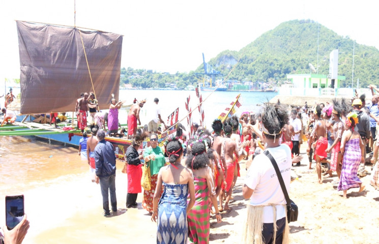 Perahu tersebut tiba sekitar pukul 09.30 Wit, dimana rombongan langsung disambut Wakil Gubernur Papua Klemen Tinal didampingi Sekretaris Daerah Provinsi Papua, Hery Dosinaen, bersama masyarakat dan ASN.