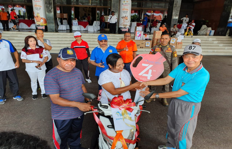 Sementara dalam rangka menyemarakan HUT RI ke-74, Pemprov Papua Jumat pagi menggelar jalan sehat dengan hadiah utama Doorprize, yakni satu unit motor Honda Beat.