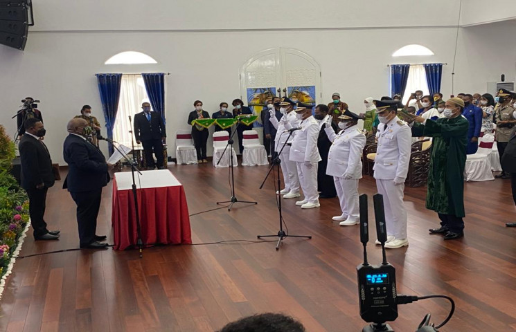 Sebelumnya, empat pasangan kepala daerah hasil Pilkada serentak 2020, dilantik Gubernur Lukas Enembe di Gedung Negara Dok V Atas Jayapura, Rabu (3/3/2021) dengan menerapkan protokol kesehatan ketat.