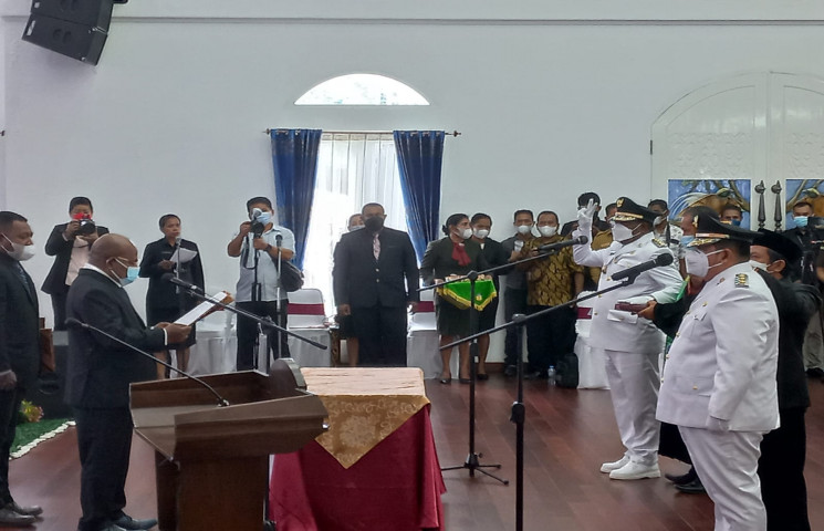 Pelantikan bupati dan wakil bupati Nabire terpilih periode 2019-2024 dilangsungkan, l di Gedung Negara, Senin (8/11/2021) dihadiri Forkompinda Nabire.