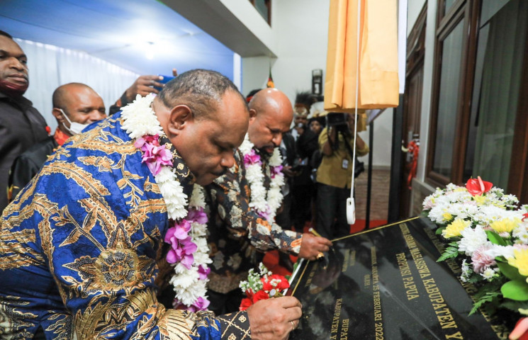 Jayapura - Gubernur Papua, Lukas Enembe berkesempatan hadir dan meresmikan gedung baru Asrama Mahasiswa Yahukimo di Jakarta Timur, Jumat (25/02/2022).