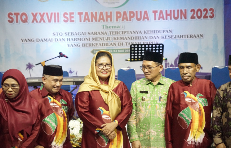 JAYAPURA - Asisten II Bidang Perekonomian dan Kesejahteraan Rakyat Sekda Provinsi Papua, Suzana Wanggai, S.Pd, M.Soc.Sc., Sabtu malam, (24/06/2023) di Aula LPTQ Provinsi Papua, Kota Jayapura, Resmi menutup Seleksi Tilawatil Qur’an (STQ) XXVII Papua Tahun 2023 yang dilaksanakan dari tanggal 18-24 Juni 2023.