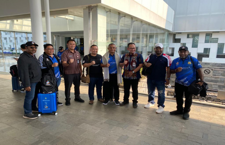 SEMARANG – Kontingen Papua yang akan berlaga di Pekan Olahraga Nasional (Pornas) Korpri Jateng 2023, Selasa (11/7/2023) sore, tiba di Kota Semarang, Provinsi Jawa Tengah.