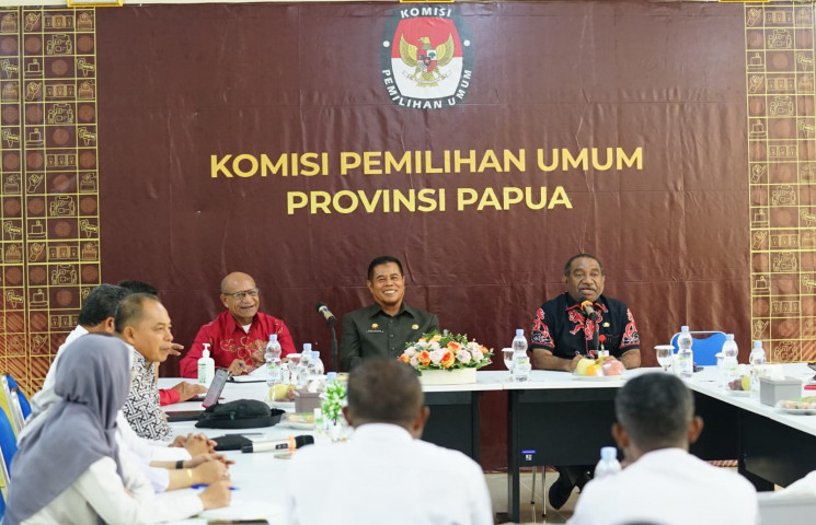"KPU Papua juga harus konsisten terhadap waktu dan tahapan pelaksanaan Pilpres dan Pileg tahun 2024 di 8 Kabupaten dan 1 Kota. Dengan begitu, pesta demokrasi di Papua berlangsung dengan aman, damai dan lancar,” ucap Pj Gubernur Rumasukun, saat mengunjungi Kantor KPU Papua, baru-baru ini.