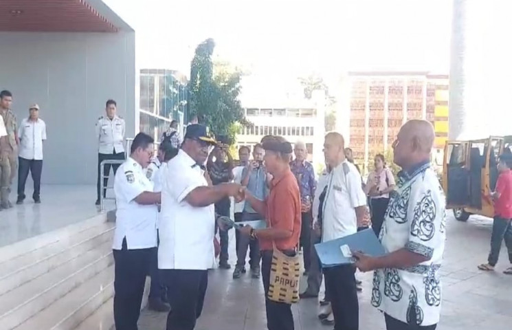 Penyerahan oleh Asisten Bidang Pemerintahan Sekda Papua Yohanes Walilo mewakili Penjabat Gubernur Papua, di Halaman Kantor Gubernur setempat, Jl. Soa Siu Dok II, Kota Jayapura, Rabu (5/6/2024).