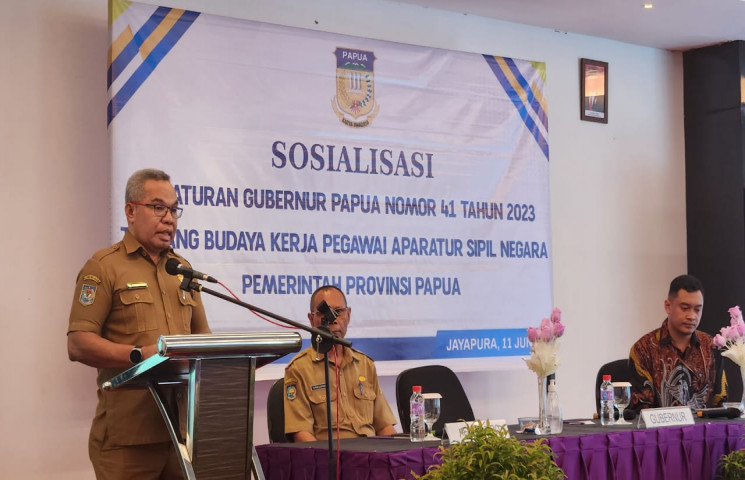 JAYAPURA - Pemerintah Provinsi Papua pada tahun-tahun ke depan akan menerapkan budaya kerja Aparatur Sipil Negara Pemerintah Provinsi Papua. Kebijakan tersebut sebagaimana diatur dalam Peraturan Gubernur Nomor 41 Tahun 2023 tentang Budaya Kerja Pegawai Aparatur Sipil Negara Pemerintah Provinsi Papua.
