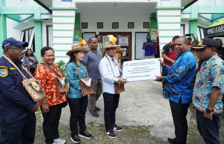 Gubernur Ridwan menyerahkan secara simbolis beragam bantuan Pemprov Papua kepada pemerintah setempat.
