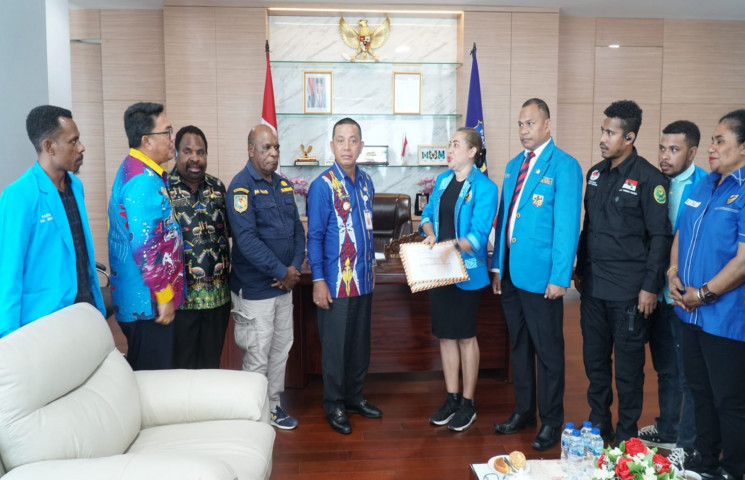 JAYAPURA - Penjabat Gubernur Papua menerima kunjungan Pengurus Karteker DPD Komite Nasional Pemuda Indonesia (KNPI) Papua, di Kantor Gubernur Papua, Jl. Soa Siu Dok II, Kota Jayapura, Kamis (12/9/2024).