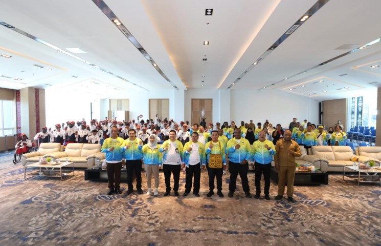 JAYAPURA - Kontingen NPC Papua resmi dilepas mengikuti Pekan Paralimpiade Nasional (Peparnas) ke XVII di Solo, Jawa Tengah 2024.
