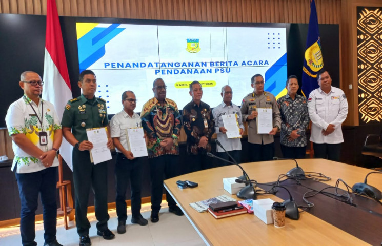 Hal ini setelah dilakukan penandatanganan berita acara pendanaan PSU di lantai 4 kantor Gubernur Papua, Kamis (6/3).