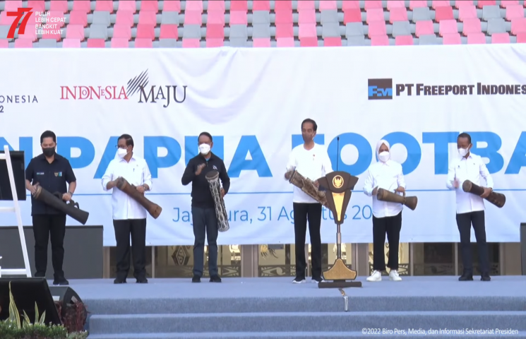 JAYAPURA - Papua Football Academy was officially launched by President Jokowi, at the Lukas Enembe Stadium, Jayapura Regency, Wednesday (31/8/2022) morning, which was marked by the beating of Tifa.